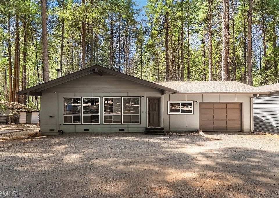 This adorable 2-bedroom, 2-bathroom home sits on a full acre surrounded by beautiful trees, offering privacy and a true sense of mountain living. Located just minutes from Paradise Lake, Little Butte Creek, DeSabla Reservoir, lots of outdoor hiking and horse trails, this property is perfect for those who love the outdoors. The spacious and bright living room greets you with high wood-beamed ceilings, large windows that fill the home with natural light, and a cozy freestanding fireplace. Just off the living room, you’ll find the kitchen featuring high ceilings, a skylight, newer stainless steel appliances, and a peninsula island that provides plenty of counter and prep space. The primary bedroom includes an updated en-suite bathroom. Additional conveniences include indoor laundry and an extra-large 1-car garage with plenty of room for a workshop. Outside, a large carport offers space for an RV, boat, or additional vehicles. With room for animals, gardens, and all your toys, this property combines comfort and functionality while being surrounded by the peace and beauty of nature. Come see what makes this home such a wonderful retreat!