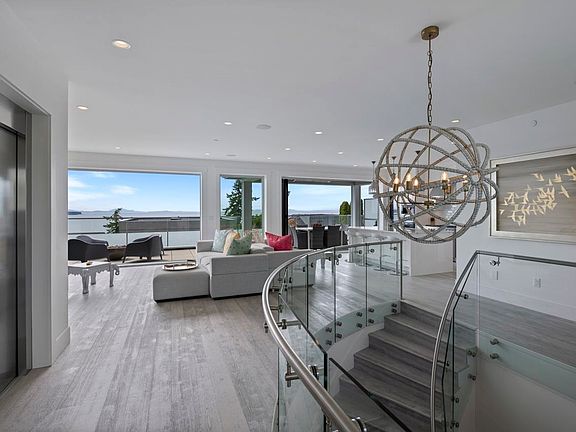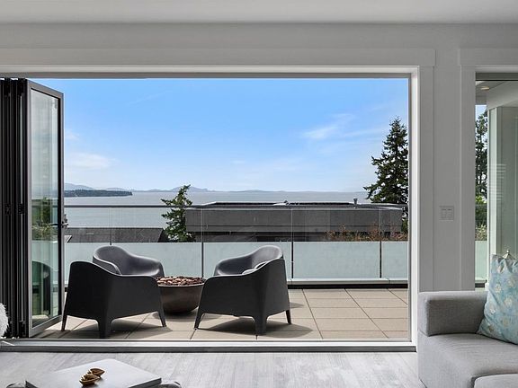 White Rock Living at its finest Fine Custom Built Ocean View Home Spans East along the shores of White Rock beach to west glorious Sunsets w/Gulf Islands. Above Prof. Meile Kitchen & wok kitchen Nat gas Fpl. Living Rm, dining & Office .Firepit& nat gas & water on balcony. Foyer level Three Bedrooms en-suited w/ walk in closets& Laundry rm. Primary suite w/Ocean View Balcony & custom walk-in closet.Comfortable radiant heated flrs on all levels. 4 Nano doors open to over 1000 SF of Balconies glass railed. Home has a Western Elevator services all floors from Dbl Garage up. Bright Legal Suite below main w/ laundry & designated parking for tenant from lane access. Quiet Peaceful Street, no Traffic. Dbl Garage and open parking for 8 cars. Schools White Rock Elementary & Semiahmoo Secondary.