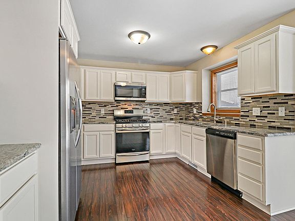 North side contemporary home includes 5 bedrooms, 3.5 baths! Previous updates in 2018 include: Granite counter tops, carpet, stove, refrigerator, dishwasher, microwave, bamboo Tik hardwood floors, and mosaic glass back splash! Gas fireplace, tray ceiling in master with 2 walk-in-closets, dual sinks, garden tub, first floor laundry, lower level with egress window includes bedroom, bathroom and rec room! Enjoy your fenced in yard with shed, situated on almost a quarter of an acre! 2 car attached garage Perfectly located in between Milwaukee and Chicago! Minutes to schools, shops and Interstate 94! YOU MUST SEE THIS HOME!