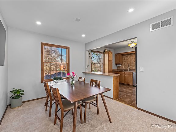 1820sf including the 3 season room off back of home (18x12 adding 216 sf of space). The walkout basement leads to the 3 season room and a 20x16 patio overlooking a huge fenced yard speckled with mature trees. Kitchen features beveled countertops, golden oak colored cabinetry and a breakfast bar providing additional cabinetry and countertop space. Recent updates have been made on both full baths. Living room and dining room with extra large windows (extra large windows throughout most of the home). Recessed lighting and dimmers in the living room, dining room and family room. The entire interior has been painted in the last 2 years. New carpet 2024 in the hallway, dining room, living room and on the stairs. All new mechanicals in the last 5 years. (please see the last 3 pictures for a list of recent updates as well as a floor plan). The walkout basement has a family room with fireplace, dry bar and sliding glass doors. Extra deep garage with a built in work bench. Smart door bell. A great yard for entertaining!