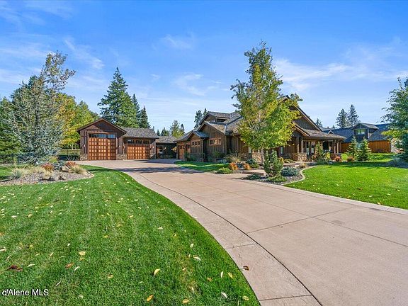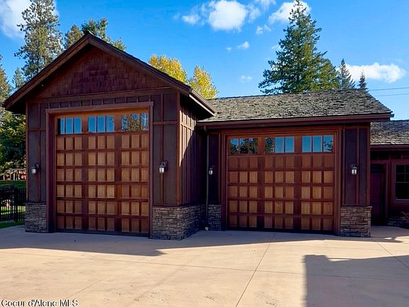 Experience North Idaho luxury living in this fully furnished Craftsman home located in the gated Bear Creek Estates- one of Hayden's most sought-after neighborhoods, just minutes from Avondale Golf Club, Hayden Lake Country Club, & beautiful Hayden Lake. Offering 3,033 sqft of refined living, this residence showcases Douglas Fir wood floors, honed granite countertops, Anderson windows & doors, & a luxurious main-level primary suite. The open layout makes entertaining effortless, flowing seamlessly to the covered outdoor patio with a built-in BBQ, stone firepit, and lush landscaping. A 1,490 sq ft shop with 13' & 11' doors provides ample space for your RV, boat, & toys, plus a private office. Stone accents inside & out create a warm, inviting feel that perfectly blends craftsmanship, comfort, & convenience. Additional upgrades include master bath steam shower, infrared sauna, 24KW backup generator, 5.1 surround sound theater, & basalt water fountain. Enjoy the best of the Hayden lifestyle with easy access to golf, the lake, & downtown shops & restaurants.