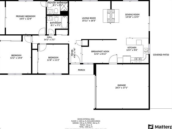 - Total interior livable area: 1,500 sqft