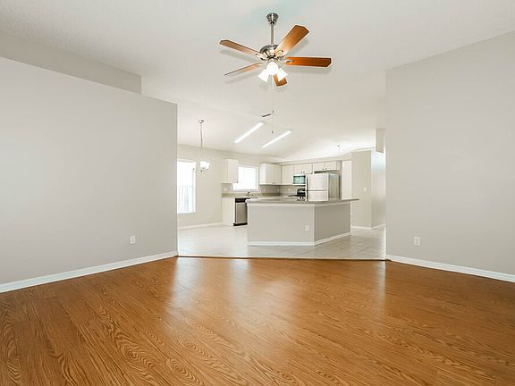 Open floor planGrassy and fenced backyardVaulted ceilingsScreened patioStainless steel appliancesEat-in kitchen