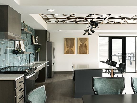 - Exterior features: Bicycle storage, Coffee & wine bar, Community gardens, Conference Room, Golf simulator, Group Excercise, Guest Room, High-speed Internet Ready, Kitchen islands, LED lighting, On-Site Maintenance, On-Site Management, Outdoor rooftop skydeck, Package Receiving, Private balconies & patios, Quartz countertops, Stainless steel appliances, Storage rooms, Sundeck, TV Lounge, Work from home spaces
