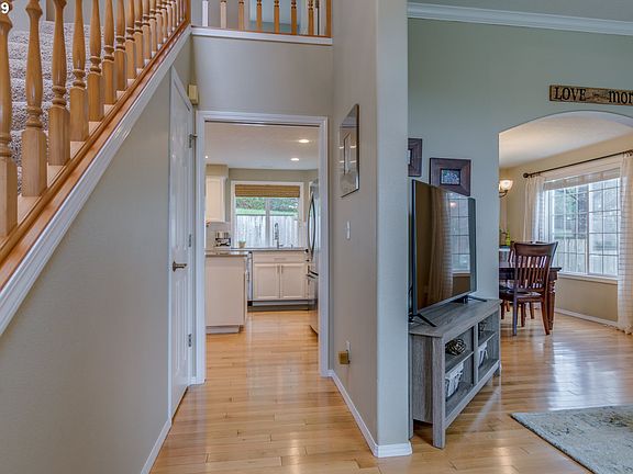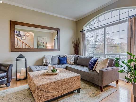 Stylishly updated with designer details. The open kitchen has quartz counters, island, gas range, SS appliances and extra deep Kraus sink. Main level w/ hardwood floors, bay windows and charming fireplace. Owners suite with bonus nook, perfect for an office/hobby room. Private yard backs green space with large deck to enjoy warm summer nights. Newer A/C and water heater. In Mountainside HS district close to Progress Ridge.