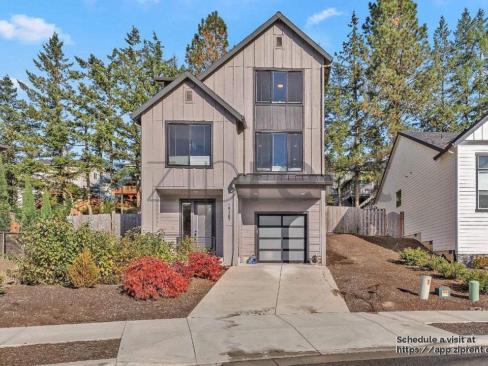 Welcome to this exquisite modern home located at 15387 SE Hawthorne Mdws St, Portland, OR 97236. This stunning property offers a perfect blend of contemporary design and comfortable living. As you step inside, you'll be greeted by an open-concept layout featuring elegant hardwood floors and large windows that flood the home with natural light. The spacious living area boasts a cozy ambiance, ideal for relaxation and entertaining guests. The gourmet kitchen is a chef's dream, equipped with high-end stainless steel appliances, sleek cabinetry, and a generous island with seating, perfect for casual dining.