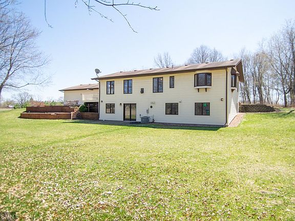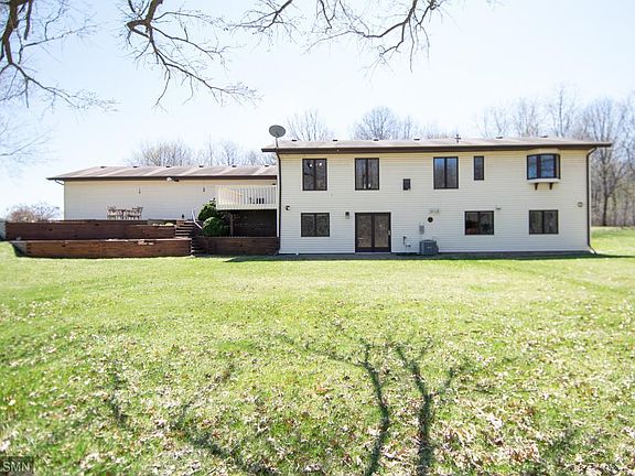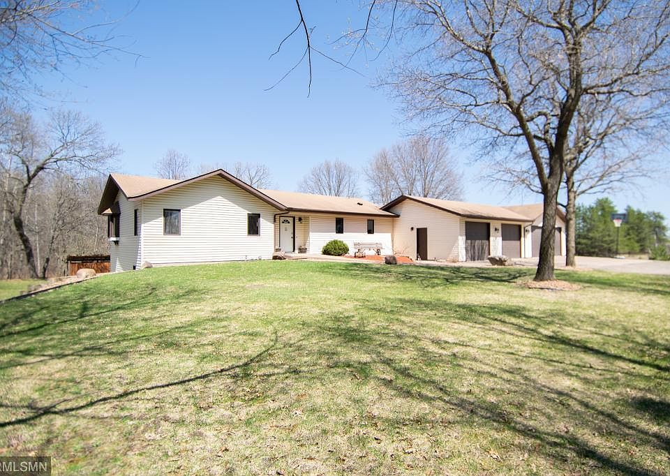Rambler on 6 Acres, 6 bedrooms AND a heated/insulated 4-car garage ready for you to call home! Wide open main level with tongue and groove vaulted ceiling, fireplace, large kitchen island, stainless steel appliances, pantry, main floor laundry, hardwood floors! Walkout basement with rough-in for wet bar, cute 8x8 chicken coop, 8x24 storage container, great firepit area, wood boiler heats house (as well as propane) and garage, wood shed, in-ground sprinkler, 200 amp electrical! Garage includes drains as well as hot and cold water -- plenty of room for your toys!!