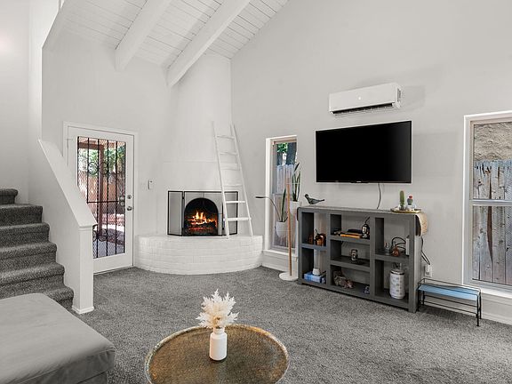 Wonderful opportunity to own this charming townhome in Santa Fe. Freshly updated, filled with natural light & high ceilings, features a wonderful open living and dining area. The kitchen offers newer Stainless appliances, ample cabinet space that opens to the living room with a kiva fireplace. Step outside to a covered patio, for alfresco dining, relaxation, and room for a raised bed garden. Second bedroom provides flexibility as a home office or a guest room on the second level. Enjoy the private balcony that opens from the 2nd bedroom/flex room. Mini Split-system heating and cooling units throughout the home will keep you comfy year-around along. Two designated parking spaces. This is a MUST SEE HOME. What a Gem!