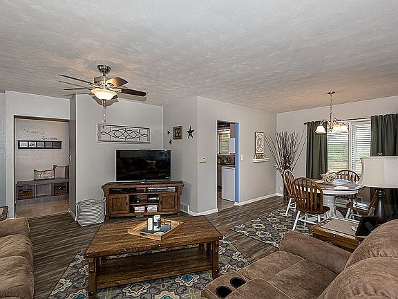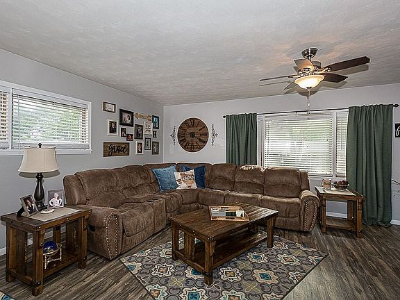 This move in ready split-level is located in a family-friendly neighborhood, on a quiet street, close to Mark Twain Elementary. The main level has carpet, luxury vinyl plank, tile and vinyl floors, formal dining room. The kitchen features laminate floors, solid surface counters and tiled backsplash. Stainless Appliances stay with the home. The master bedroom is located on the upper level and features carpet floors, and separate sitting area. The attached master bath includes tile floors and solid surface counters. The upper level includes 3 bedrooms, a full bath and a half bath. The partially finished lower level features a full bath, storage area and laundry room. Outside you'll find a sitting area with a fire pit.