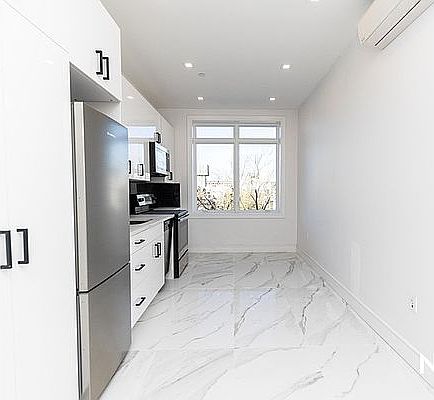 Brand New 2 bed 1.5 bath duplex(wood staircase) with in unit washer and dryer, brand new appliances including a built-in microwave, dishwasher, spacious closets, balcony, and plenty of natural light. Close to A/C trains. Central A/C High Ceilings Video Intercom Natural Light in Living Area Washer dryer installed Outdoor Space Skyline view Roof access Eat In Kitchen Stainless Steel Appliances Dishwasher Built in microwave Stone countertops