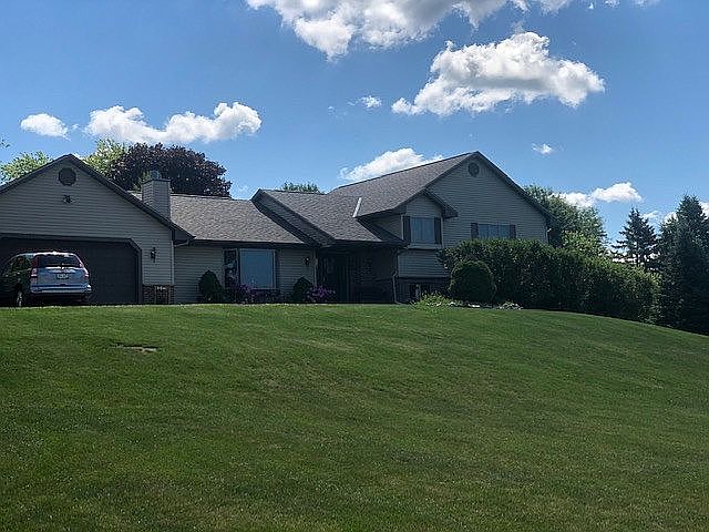 Spacious Tri-Level home with large kitchen & breakfast bar. Open living/dining area great for entertaining. Large kitchen pantry closet and half bath with washer/dryer complete the main level for convenience. Wood burning fireplace in main living room. Upper level boasts 3 BRs and 2 full baths. The large master suite includes sizable walk in closet, and generous master bath. Master bath features walk in shower, double vanity and whirlpool tub. LL is an in law suite accessible by half flight of stairs or built in chair lift. Includes 2 BRs, full bath with stacked washer and dryer, eat-in full kitchen and living room with gas fireplace. Sliding doors out to concrete patio and newer laminate flooring. Out back you will find fenced in area and large pool. Top it off with view of Holy Hill!