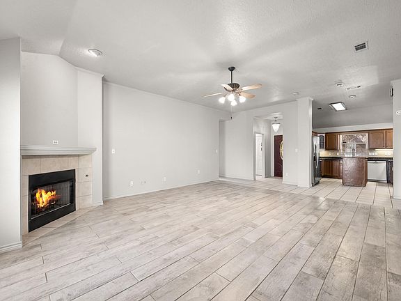 Cozy gas fireplaceHigh ceilingsTile floorsSpacious family roomStainless appliancesBuilt-in media outletsSpacious closet
