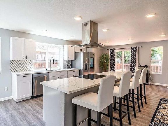 Charming newly remodeled rambler nestled on a quiet cul-de-sac. This 3 bedroom 2 bathroom home features modern updates, an open concept living space, and a backyard patio. Includes new laminate floors, new kitchen with a 10 foot quartz island, and stainless steel appliances. The master bedroom features barn door access to a fully remodeled bathroom with a sliding glass entry shower. The surrounding community includes a playground, park and paved hiking trails all visible from the front door.