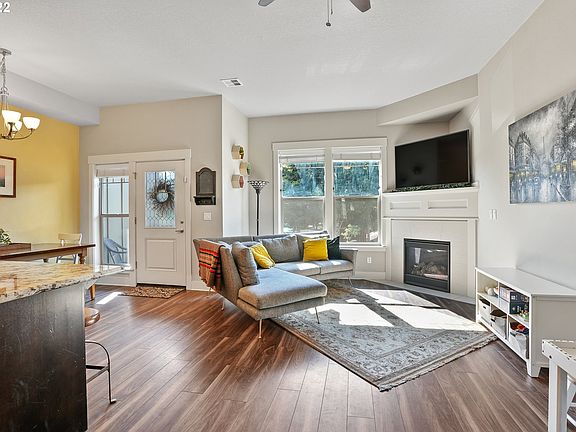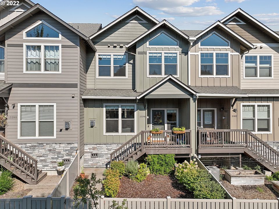 Modern townhome in the Crest View community! Beautiful 3 BR 2.1 BA home w/ vaulted ceilings & tons of natural light! The main lvl is great for entertaining guests w/ this open concept KT that flows right into the living room w/ a cozy gas FP! All bedrooms are on the upper lvl conveniently located to the laundry area. The covered back deck looks out to the community park & basketball courts! There are so many features & amenities in this community including a pool! LOW HOA's!