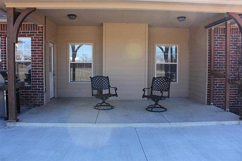 Home on one acre m/l. Large outdoor entertainment space. Hook up for natural gas grill. Inside has wonderful open split floor plan. Quiet neighborhood with one entrance near Claremore Lake.