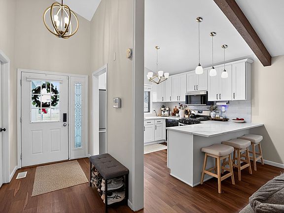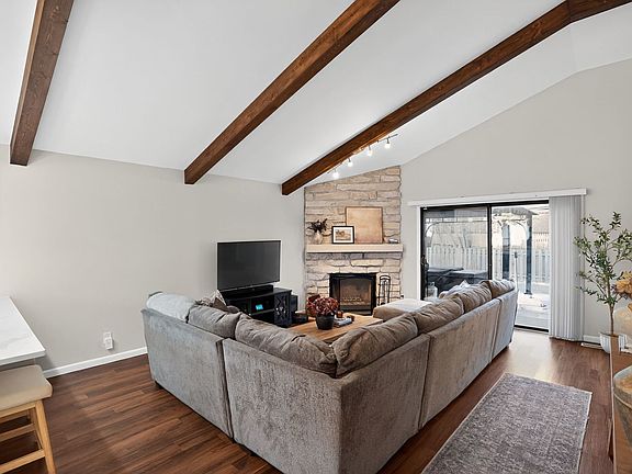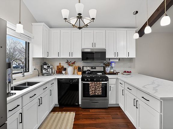 Cozy wood-burning fireplaceNewer kitchen cabinetsNewly refreshed backyardBeautifully updated kitchenQuartz countertopsShed for extra storageNew stainless steel appliances
