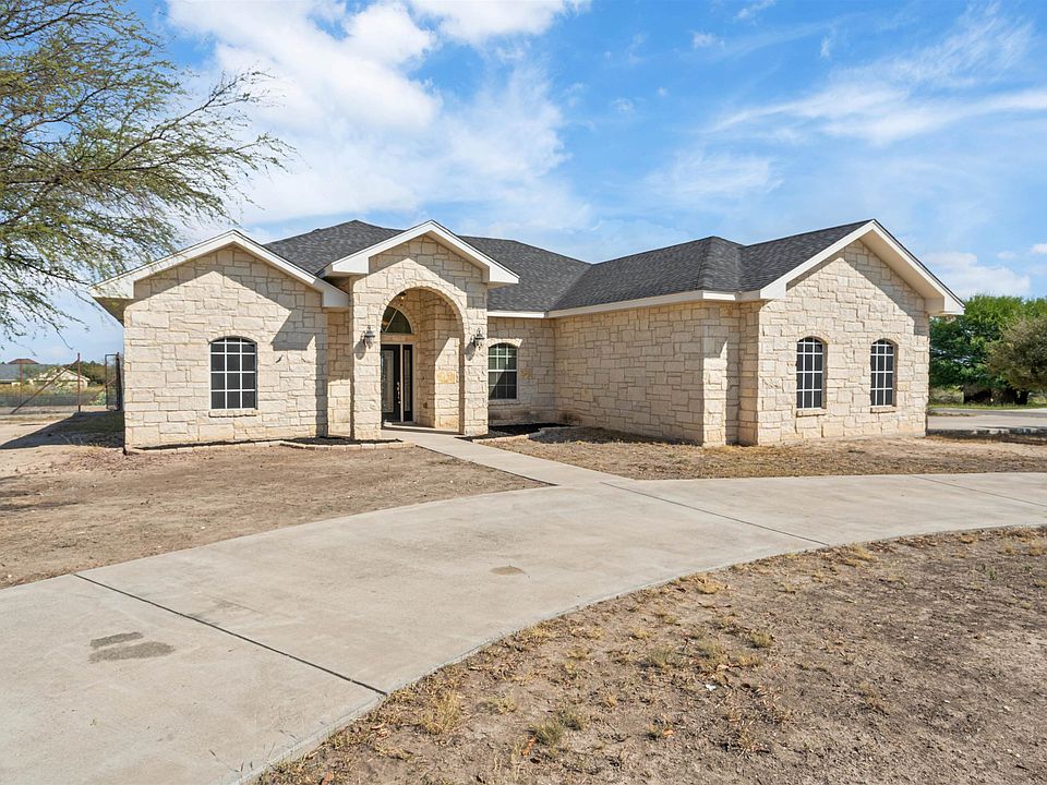 Located in Del Rio’s premier lake-area community, Rancho Agua Vista Subdivision, this beautiful 3-bedroom, 2-bath Austin limestone home offers comfort, space, and versatility on over 2 acres. Featuring more than 1,900 square feet of living space, the open-concept layout is designed for easy living and entertaining. The kitchen opens to the dining and living areas, creating a warm, inviting flow throughout the home. The split-bedroom floor plan provides added privacy, with a spacious primary suite and generous secondary bedrooms. Fresh paint inside and out gives the home a clean, move-in-ready feel. Enjoy the outdoors on the expansive covered back patio—perfect for gatherings or relaxing evenings. This property includes two platted tracts totaling over 2 acres, offering multiple options for future use. There’s plenty of room to add a shop, boat, or RV garage to the left of the home, or you can keep the additional tract as extra space or sell it separately. The property also includes a two-car garage and a circular drive for easy access. Conveniently located just minutes from Del Rio and Lake Amistad, this home combines quiet country living with the benefits of a prime location.