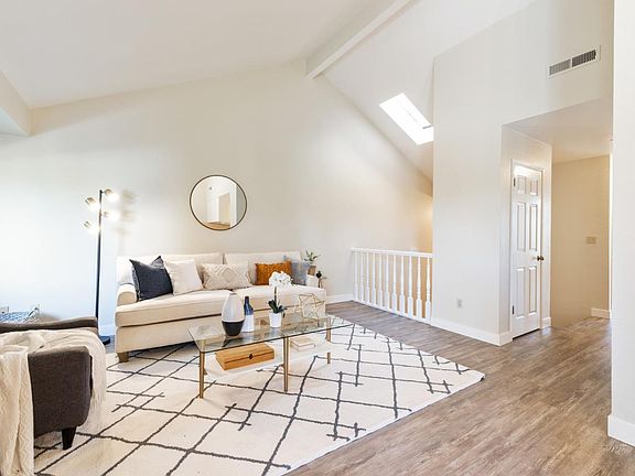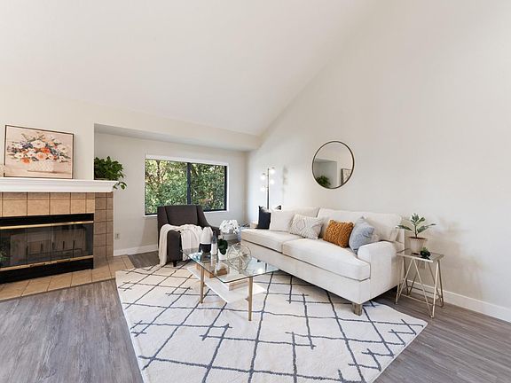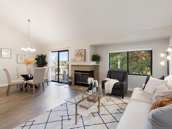 Fantastic three bedroom two bath home in a beautiful town-home community. Vaulted ceiling, light and bright upon entry, master bedroom on main floor, two bedroom one bath on ground level. Two car attached garage. Two balconies, privacy provided by beautiful maple and Redwood trees. Great features incl: Main bd with vaulted ceiling, lots of natural light, master bath with tub and dual sinks with dresser storage. A spacious kitchen looks out to balcony and features extra deep Kholer sink, GROHE hardware, large pantry storage. Fireplace in living room has beautiful white molded mantle. Balcony off dining area has refreshing view of mature redwood trees, and on the horizon enjoy views of the mountain range. Beautiful. A skylight allows lots of natural light. On the ground level find 2 bedrooms, one features balcony overlooking the lawn and the redwood trees, and one bathroom with full tub. Storage! Great community pool. Updated pdated park across the street and easily accessible.