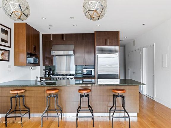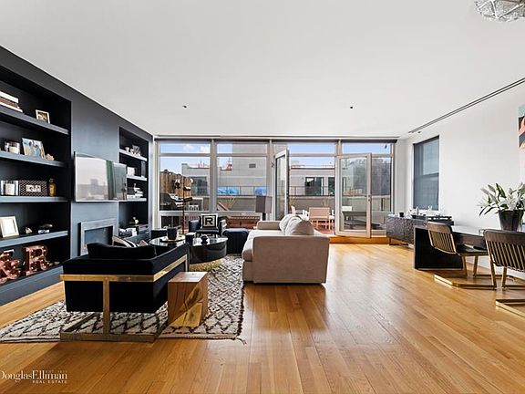 This perfect home in the heart of the vibrant Lower East Side offers views to One World Trade Center, the Chrysler Building and the Empire State building. The 7th floor penthouse loft is drenched with sunlight, has 3-bedrooms, 2.5 baths, and boasts 1875 square feet. The apartment features central air conditioning, wide plank white oak flooring, oversized windows and high ceilings. The spacious living room features a working gas fireplace and custom built-in bookshelves. It opens onto a charming, west-facing, terrace. The terrace offers breathing taking views of the Manhattan Skyline. The grand primary bedroom suite with an east-facing balcony has one walk-in closet and an additional large closet that is sizable with custom built-ins. The primary bathroom includes an oversized rainforest shower, Tiger wood vanities and Italian double size trough sinks with Grohe fixtures. The two additional bedrooms are well proportioned with ample storage, plus an additional east-facing balcony and a separate bathroom that includes Zuma Soaking tub. When you're not patronizing the wonderful array of restaurants on nearby Clinton Street, patronize yourself in the apartment's chef's kitchen. Moss granite countertops and Wenge finish custom cabinetry. There is a Viking stove, Sub-Zero fridge and wine cooler, Bosch dishwasher and a breakfast bar. There's also an LG washer and dryer in the separate laundry room and four storage closets with custom built-ins. In the basement, a private storage space. The building, built in 2005, is a well-maintained boutique condominium with a common, furnished roof deck, a health club, superintendent and part-time doorman. Houston Street is just steps away and there is easy access to the F/M, J/Z Trains, Essex and Union Markets, Whole Foods, plus all the entertainment and boutiques that enrich the appeal of the neighborhood and East Village. The unpretentious, no-frills attitude of the Lower East Side draws people from all lifestyles, contributing to the neighborhood's unique and eclectic identity. There is nothing like this available in the area.