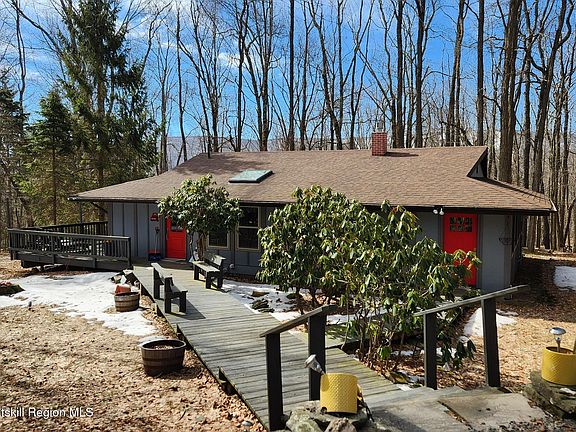 Escape to your own private woodland retreat, just about a mile from Belleayre Ski Mountain! This beautifully updated hideaway offers the perfect blend of tranquility and accessibility, making it an ideal four-season getaway or full time living. Nestled among the trees, the charming ranch-style home features an effortless single-level layout with three bedrooms and two full baths. A skylight bathes the dining area in natural light, while the inviting living room—anchored by a newly updated propane fireplace—creates a warm and cozy atmosphere all year round. Meticulously renovated by the current owners, this home is truly move-in ready. Mostly everything in the house is included! (Sellers taking personal items including art work). Enjoy the new kitchen and two stylishly updated bathrooms (2021), complemented by new glass sliding doors, exterior doors, and new flooring (2022). Thoughtful improvements continue with spray foam insulation in the crawlspace, a new hot water heater, fresh exterior siding and paint, and a spacious two-car garage (2022) to store all your gear, as well as a small shed. Step outside onto the expansive wrap-around deck, where you can sip your morning coffee, soak in the serene forest views, or entertain guests under the stars. Also, watch your dog from the deck as there is an invisible dog fence installed! Sellers are also leaving some outdoor equipment! Whether you're carving fresh tracks on the slopes, hiking scenic trails, or simply unwinding in your peaceful sanctuary, this turn-key mountain escape is ready to welcome you home.