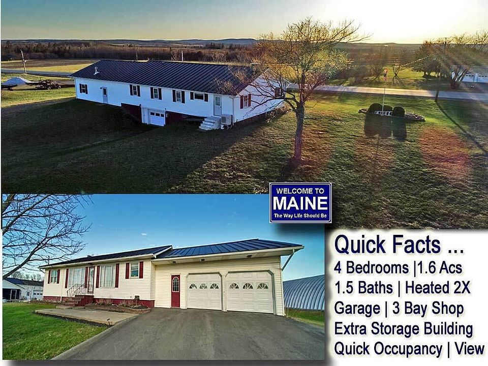 How Many Home Listings Have You Checked Out? Finding A Lot Of Them Need A Ton Of Work Or Have Lots Of Strings Attached? Not This New Country Ranch Listing! Video. Check Out The 4 Bedroom Home, The Walk Out Cellar With 3rd Garage Bay That Is Heated. Expand Into This Area If You Work From Home Or Need Space For In-Law Apartment. Besides 4 Bedroom Home, 1.5 Baths, This One Owner Home Features Cabinet Filled Oak Kitchen With Island. Tiled Bathroom With Two Sinks, Extra Vanity Area And Storage! Double Sliding Glass Sit Down Tile Shower! Some Furniture Stays! Vinyl Sided, Standing Seam Metal Roof And One Heck Of A Western View! Hi Efficiency Zoned Hot Water Baseboard Furnace Is System 2000 Oil Miser. Two Heat Pumps For Heat And Cooling Too! Attached 2.5 Car Garage With Insulated Power Doors, Water, Heat, A Floor Drain. Owner Will Consider Selling Home In Package With Neighboring Retail Sales & Service 3 Bay Shop, The Extra 50x34 Shop Out Back. Working On Option To Split Home And Shop, Storage Building! Stay Tuned On Those Developments. Paved Drive, Parking Lot! Concrete Walkway! Could You Use 4 Bedrooms? All On One Floor? Pretty Place, Neat Package If You Are In The Market For This Hodgdon Maine Investment Property. Great Schools, Small Town Friendly And You Are Surrounded By Farms, Woodlots And Plenty Of Space! Shop Has Big Paved Parking Lot, Is Set Back From Road, Hooked to It's Own Water Well, Septic System.