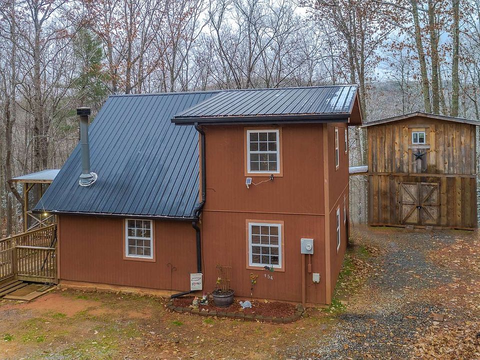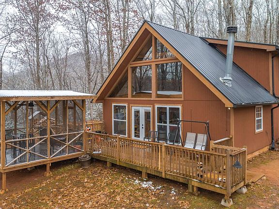 Want privacy in the mountains in an updated cabin, this is it. Lots of wood accents like the rough wood trim and mountain laurel banister. The kitchen is immaculate with granite counters, a gas range, all stainless appliances, and beautiful custom wood cabinets. There is maple flooring through out. Corrugated tin ceilings give a unique feel and brighten the living area. Open beams are another unique feature that gives the mountain cabin appeal. Outside has a great deck area with a screened gazebo. There is also a 2 story workshop/garage for toys and projects.