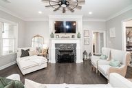 Gas log fireplaceOpen deckHand-scraped hardwood floorsRocking chair front porchCustom white cabinetryCeiling fansWalk-in closets