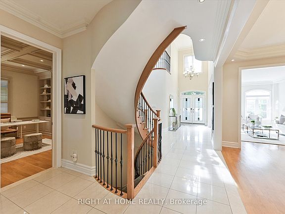 This stunning, sun-filled 6-bed, 5-bath executive home sits on a rare and impressive 50 x 191 ft lot in the heart of North York, just minutes from Yonge & Finch. Offering nearly 5,000 sq ft of finished living space including a walk-out basement, its perfectly suited for multi-generational living, rental income, or extended family living.The stately stone, stucco, and plaster façade opens into a dramatic foyer with soaring 19-ft ceilings, pot lights, and elegant mouldings. The spacious formal living and dining rooms with oversized windows are ideal for entertaining, while the cozy family room with gas fireplace and built-ins offers a warm everyday retreat. A main-floor library wrapped in wainscoting and custom cabinetry adds charm and flexible workspace. The chefs kitchen is a true showpiece, featuring a centre island, stainless-steel appliances, and gas range ideal for family meals or hosting guests. Upstairs, five sun-drenched bedrooms are illuminated by southern exposure and a skylight that brightens the upper level. The primary suite boasts his & hers walk-in closets and a spa-like ensuite. The fully finished walk-out basement includes two more bedrooms, a full bath, and a generous rec room with Berber carpeting, perfect for teens, in-laws, nanny or rental use. Step outside to a massive, sun-soaked backyard ideal for summer entertaining, family playtime, or creating your dream outdoor space. Parking for four includes an attached double garage and private drive. Located just seconds from Charlton Park and a walking trail, and minutes from schools, shopping, and Finch subway station, this rare offering combines scale, craftsmanship, and location. A unique opportunity to own an executive home in one of North York's most desirable pocket.