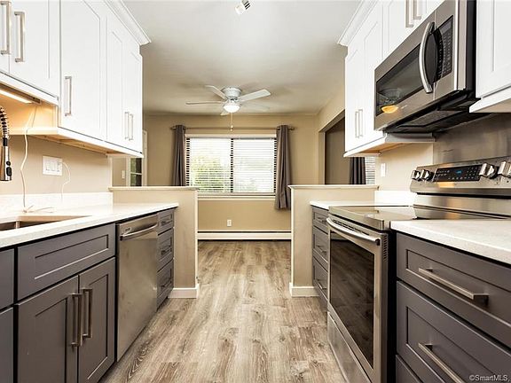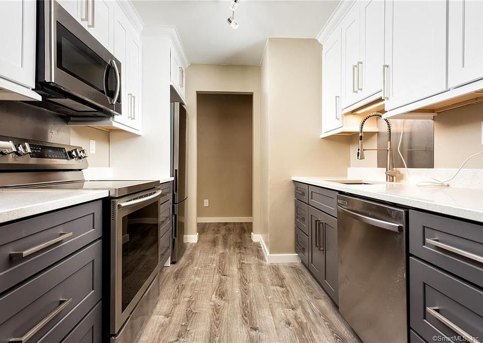 Move right into this totally renovated 1br with carport at Candlelight Terrace which features fabulous park like grounds along the Rippowam River! Spacious living room opens to separate dining area and private deck. New kitchen boasts quartz counters & s/s appliances. Bedroom has walk-in closet. Additional updates include: new flooring, interior paint, a/c units, washer/dryer and windows. Additional storage, heat, h/w included in common charges. Pet friendly complex offers pool, club house, BBQ area & guest parking. Minutes to Scalzi Park, vibrant downtown, shops, golf course & public transportation. Great investment opportunity or primary residence.