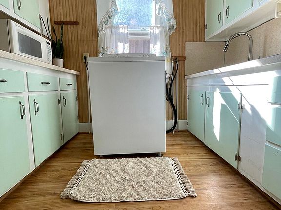 - Description: Washer in kitchen, drier on porch