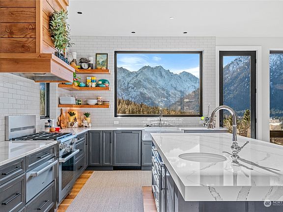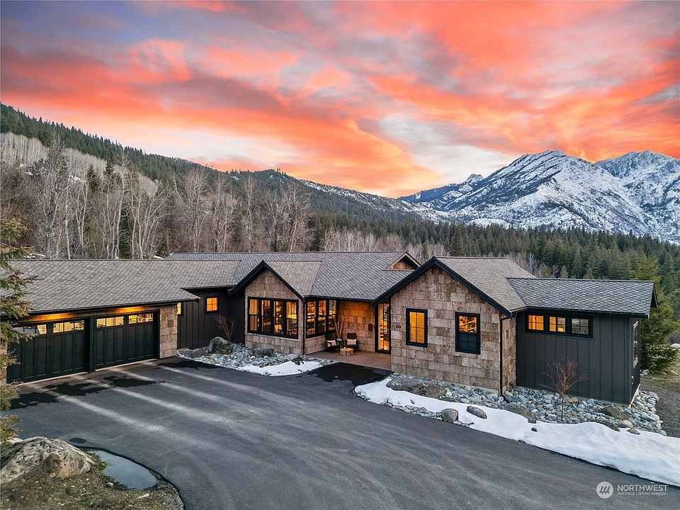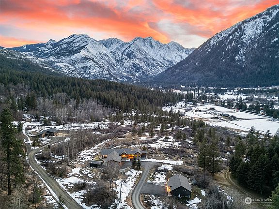 Welcome to this architectural masterpiece on 5 acres, located just minutes from Leavenworth, with stunning, breathtaking mountain views! This Craftsman contractor built home boasts incredible quality and attention to detail. The open concept living and inviting outdoor patio has a swim spa and a hot tub for enjoying the views any time of the day! Entertain guests by the fireplace or in the chef's kitchen complete with high-end appliances with wall to wall windows for views of the Enchantments. This investment property includes a popular separate 2 bedroom ADU with a Tier 1 nightly rental permit! Experience luxury mountain living at its finest and don't miss this amazing opportunity to own one of the most desirable properties in Leavenworth!