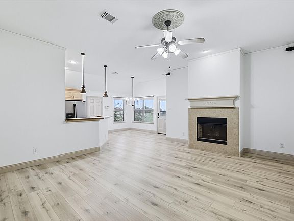 Cozy wood burning fireplaceOpen concept floor planBrand new carpetStunning new tile backsplashSpacious covered back porch