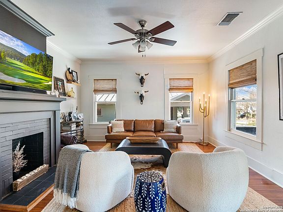This 1918 Craftsman in the historic Mahncke Park blends timeless charm with modern amenities. A spacious front porch invites you into a home filled with natural light and stylish details. Original hardwood floors and soaring ceilings, create an elegant atmosphere, while the newly renovated kitchen boasts custom cabinetry, granite countertops, and stainless steel appliances. The home features three bedrooms all with updated en-suite baths, plus an additional full guest bath. The generously sized master suite includes a large bath and walk-in closet. Additional space detached can be used as office/playroom. Other highlights include interior laundry, a tankless water heater, and proximity to the Pearl, top-notch restaurants, shopping, and Central Market.