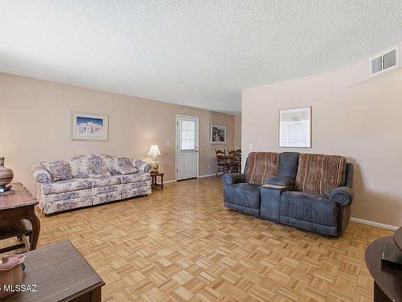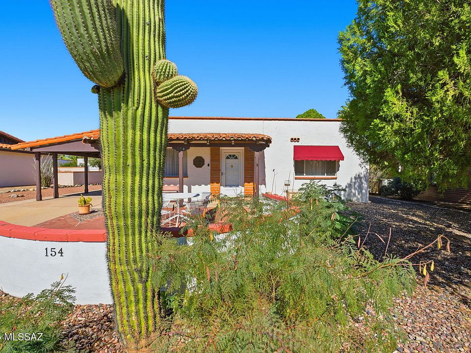 Easy desert living awaits in this charming 2BR/1BA, 1,182 sq ft home in a friendly 55+ Green Valley community--ideal for winter visitors and full-time residents seeking sunshine and simplicity. Parquet floors, tile in kitchen/bath, and an extra office/den offer comfort and flexibility. Enjoy low-maintenance outdoor spaces which includes a stately saguaro that greets you at the sunny paver lined front patio, covered entry, and a backyard with covered patio and extended pavers. Interior storage, attached exterior tool shed, carport, and grab bars for convenience. One street away from GVR East Center and a minute to I-19 in an established neighborhood.