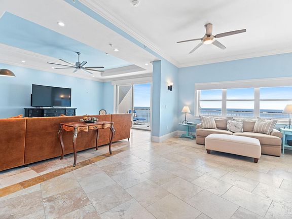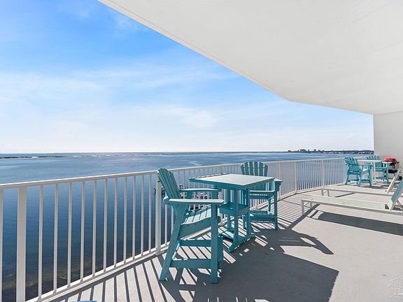 Experience breathtaking luxury in this stunning penthouse at the prestigious Harbour Pointe Condominiums! Have you ever dreamed of owning your own piece of paradise? This expansive waterfront condo offers some of the most spectacular views on the Gulf Coast, and even comes with its own private boat slip! Step into the penthouse through a welcoming foyer with beautiful tile flooring that flows seamlessly throughout the home. The primary suite immediately captures your attention with its breathtaking bay views, double-door closets, and a spa-inspired en-suite bathroom featuring a jetted tub, a tiled walk-in shower, and dual granite vanities, the perfect retreat for rest and relaxation. At the heart of the home, the kitchen features granite countertops, a breakfast bar, dark wood cabinetry, and stainless-steel appliances, including a smooth-top range. Just beyond, the formal dining room offers bay views, the ideal spot to enjoy your morning coffee, watch the Blue Angels fly by, or host unforgettable gatherings with friends. The open concept living area features sliders that lead to a generous balcony overlooking the sparkling waterfront. Whether you’re grilling, entertaining, or simply unwinding with a sunset view, this space embodies the essence of coastal living at its finest. You will also find three additional bedrooms, each spacious and inviting. One serves beautifully as an office or fourth bedroom, complete with its own full bath featuring a tiled walk-in shower and granite vanity. The other guest suites each offer private en-suite baths with tiled showers and granite countertops, providing comfort and privacy for all. Enjoy dolphins at play, boats gliding by, and endless evenings of serenity from your private slice of the sky. This is more than a home, it’s a lifestyle. What are you waiting for? Your waterfront dream penthouse is ready for you.