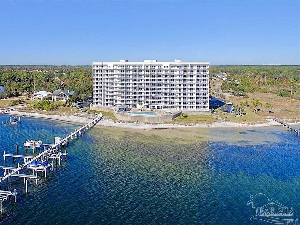 Gorgeous WATERFRONT condo on the 7th floor of Harbour Pointe~ boasting breathtaking, expansive views over Big Lagoon! * Twin elevators, a beautiful pool, fitness center, and a reading room are among the amenities of the complex. Storage unit and parking garage are also available for additional dues * Inside the unit, the open concept kitchen has granite countertops, updated stainless steel appliances, bar seating, and a pantry. The Great Room has large sliding doors leading to the MASSIVE balcony~ the perfect place to sit and watch a sunset! * The Master Suite has high vaulted ceilings and also its own sliding doors to the patio~ wake up in the morning to the beautiful views of the water! * The ensuite enjoys a garden tub, separate shower, and lots of closet space! * Located on the beautiful stretch of Gulf Beach Hwy the condo is mere minutes to NAS Pensacola, a short drive to the gorgeous beaches of Perdido Key, and just 20 minutes to downtown Pensacola *** Please verify all features, measurements/sqft, dues, etc that may be important to you!