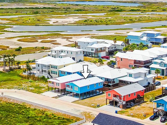 Built in 2024, this beautifully furnished 4-bedroom, 3-bath beach retreat is nestled in the newly developed Mahi Bay subdivision of Port Aransas. With a proven rental history and active enrollment in a vacation rental program, it offers the perfect blend of personal enjoyment and income potential. Step inside to an open-concept floor plan featuring vinyl plank flooring, quartz countertops, pendant lighting, and coastal shiplap accents. Each of the three full bathrooms showcases beautifully tiled showers—combining style, easy maintenance, and a spa-like feel. The elevated design provides generous covered space below, ideal for entertaining, parking, or play. Enjoy serene mornings on the front patio overlooking protected wetlands, where abundant birdlife and tranquil views create a peaceful escape. The home comes fully furnished, including stainless steel appliances and a washer/dryer. Whether you're seeking a personal getaway or a smart investment, this turnkey coastal property delivers! Great price and low HOA! Contact your favorite agent and schedule a showing today!