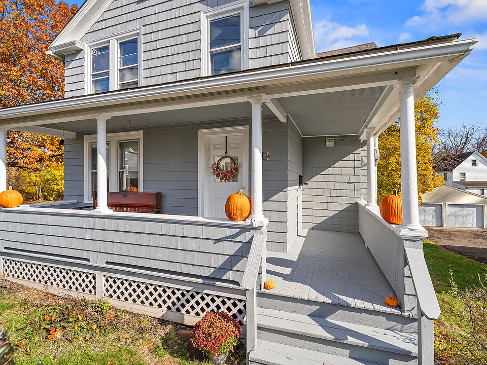 Looking for a perfect condo alternative without the HOA costs? This charming 2-bedroom, 1.5-bath single-family home offers the privacy, comfort, and thoughtful updates you've been searching for, all on a quiet, low-traffic street. Enjoy natural gas heat plus a newer pellet stove that efficiently warms the entire home - an incredible energy-saving opportunity! Walking through the VERY generous sized kitchen will lead you to a conveniently located laundry room featuring radiant heated flooring, providing comfort and convenience in every season. Spacious back deck perfect for summer cookouts and family gatherings. The classic charm and thoughtful updates truly create a warm and welcoming space ready for you to move right in. Detached garage also gives you additional storage if needed. Whether you're a first-timer, downsizer, or simply want easy living without condo restrictions, this home checks all the boxes. Private setting, low-maintenance living, and move-in ready - 154 Front Street is a must see! :-)