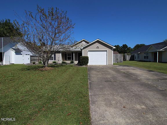 Fantastic 3 bedroom 2 bath home located in the heart of Havelock. Open concept floor plan, with very spacious kitchen and fireplace in the great room. All one floor living, makes the perfect home for a young family or someone wanting to downsize. Large fenced in rear yard with patio and firepit. Tons of storage in all the bedroom. Convenient to schools, shopping, and Cherry Point Air Base.