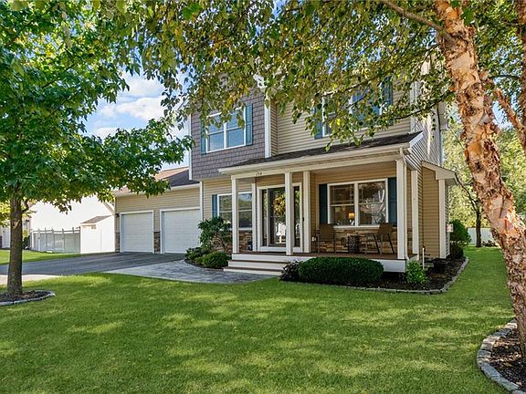 This pristine, well maintained, upgraded and spacious Craftsman Colonial built in 2014 is ready for you to call Home! 3 Bedrooms and 2.5 Baths with additional finished living space in the Basement will provide you with all of the indoor space you need. Interior Upgrades include blower fan w/ remote added to Gas Fireplace; Basement Finished (2021) adding 360 sq ft of living space; Electrical adding separate 60/80 Amp subpanel and whole house generator plug (2021); Gas Water Heater - A.O. Smith commercial grade 50 gallon (2023); Speed Queen commercial grade Washer/Dryer (2024 - $4,400 value). Outside, the home is situated on a 1/4 acre lot, located at the end of a cul-de-sac. 8 home street just recently developed in 2014. Exterior Upgrades include Deck renovation with Trex brand composite decking, white PVC trim boards and white Vinyl railings (2019); UNILOCK brand patio pavers off deck - 17 ft X 17 ft (2020); Anderson ventilating storm door on Front Entry door (2021); Sprinkler/Irrigation watering system with app-based WiFi control and Deduct Meter (2021); Leaf Filter brand gutter protection/gutter guards (2021); Front Porch decking and trim boards completely stripped and refinished (2024). This home spares no details. Granite Kitchen and Baths; GE Profile appliances; Bamboo hardwoods; Luxury Vinyl Plank flooring and Cedar Closet in Basement; Oversized (576 sq ft) 2 Car Garage can easily fit two cars and accommodate all storage needs. Nothing to do but move in. Welcome Home!