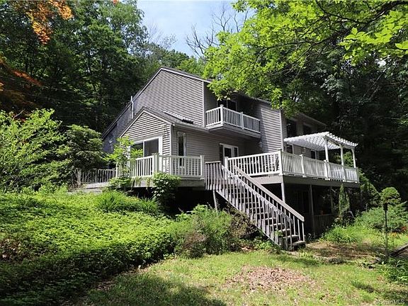 Spacious Contemporary style home. This home has an bright open floor plan with large windows throughout. The kitchen is open to a dining area which flows to the formal living room and den all with wide board floors. The dining and living room have cathedral ceilings and french doors to the deck. The den on the first floor was originally a third bedroom and can easily be returned to a bedroom. The living room has a propane stove with a two story stone chimney. The home offers a full bath on all three levels. The second floor has two spacious bedrooms an open loft area. The lower level walkout basement has a large family room, exercise room that could be used as an additional bedroom all with tiled floors. The 2 car detached garage has a finished (unheated) studio with hardwood floors great for an office, art studio or craft space. There is also a car port for a third car. The price of this home reflects the work that will be required for some differed maintenance.