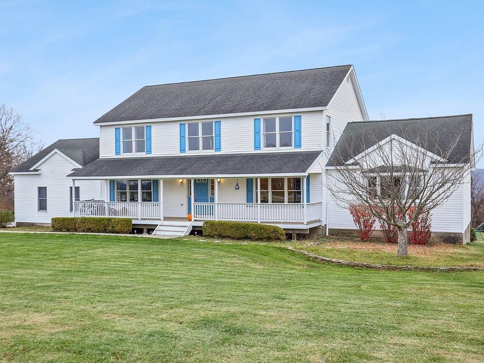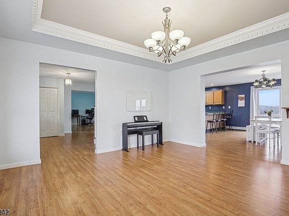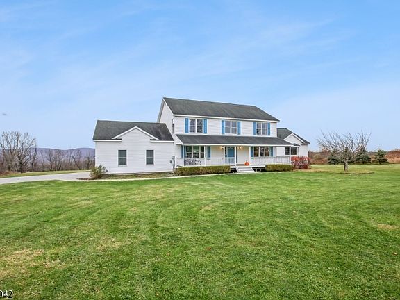 Welcome Home! This beautiful colonial sits on just under 3 acres, offering 4 bedrooms and 2.5 baths with incredible space, comfort, and scenic views. Built with 2x6 modular construction, this home provides excellent insulation and impressively low utility costs.The main level features an open floor plan with hardwood floors, a bright kitchen with huge counter space, double ovens, and ample cabinetry, flowing into the dining room and newly finished great room with high ceilings, custom built-ins, vinyl plank flooring, and an electric fireplace. Additional rooms include a family room, office, and a spacious laundry/mud room with two closets and storage.Upstairs, the primary suite offers a walk-in closet, jacuzzi tub, oversized shower, and double vanity. Three additional bedrooms complete the level, with all hardwood flooring.The walk-out basement features a custom bar, surround sound, large storage room, and an additional framed room and bathroom already prepped for finishing.Outdoor living shines with a large back deck, lower patio, 30x35 garden, fish pond, big open yard with a sledding hill and playhouse, plus spectacular sunrises, sunsets, and night sky views.Extras include fully paid-off solar panels (rear roof), baseboard heating, an oversized 2-car garage, recently cleaned septic, and a serviced furnace.Minutes to High Point State Park, downtown Sussex, parks, hiking, and easy access to NY & PA.