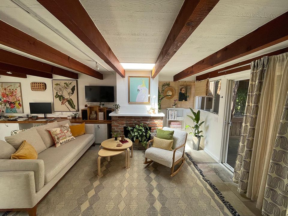 A very private and very large studio apartment is available directly across from the lumberyard complex with Flourcraft & Watershed in your backyard. This spacious unit, much larger than most 1 bedrooms has very large closets, a really huge bathroom with a walk-in shower under a big skylight. The entire bathroom has been redone with a new sink, tile, toilet and fixtures. Full kitchen with dishwasher, 4 burner stove, and large prep areas. The unit also has a beautiful brick gas-burning fireplace.