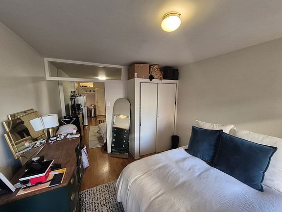 Slick one-bedroom located in ideal neighborhoods tucked between Little Italy and Chinatowna bright and quiet apartment, a two-flight walk-up featuring two closets in a sun-flooded apartment. The bedroom fits a queen bed and has enough space for dressers. The living room has ample space to move around. The apartment is ideal for individuals working from home and perfect for anyone seeking a peaceful and bright place. Each floor features a video cameraa secured building with a double-locked front door. To view, please allow at least 24 hours' notice.