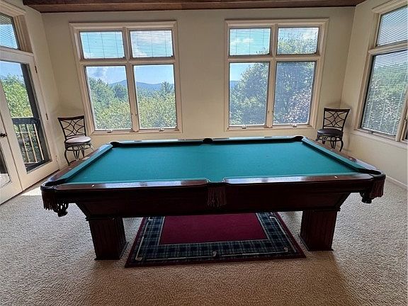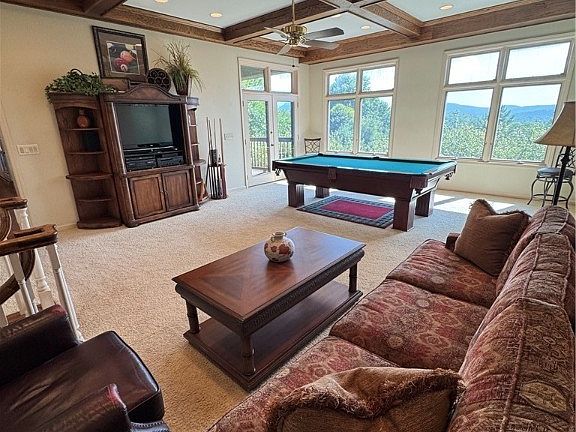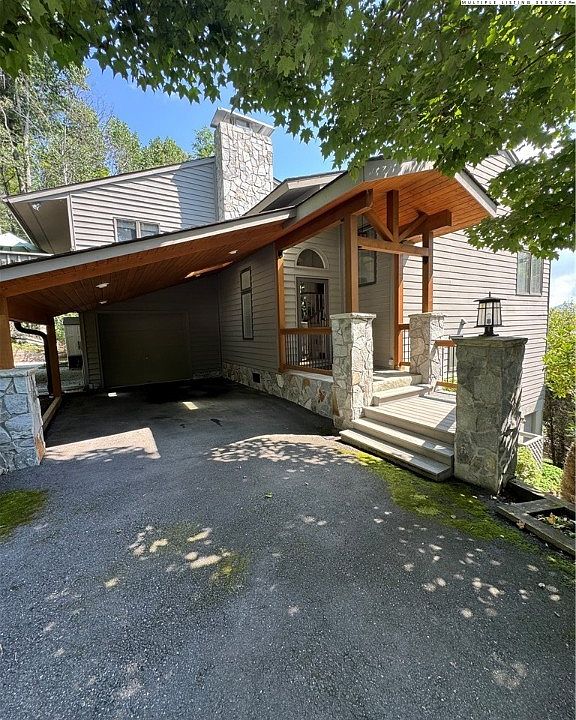 This stunning split-level furnished home in Linville Land Harbor is truly one you must see in person to appreciate all it has to offer. Stepping through the front door you notice a spacious living room with coffered ceilings, filled with natural light and breathtaking views, including a captivating view of Grandfather Mountain through the expansive windows. The adjoining dining room and kitchen feature vaulted ceilings, granite countertops, high-end stainless-steel appliances, custom cabinets and much more!. Off the kitchen and dining area, notice the beautiful large outdoor deck, floored with durable Bangkirai wood providing the perfect space for entertaining, with abundant seating and a large area to host gatherings, while enjoying the long-range view. Overlooking the dining area, you’ll find a large office area with its own deck, an ideal spot to enjoy morning coffee. One of the guest bedrooms and baths are on this level as well. With just a few steps find a en suite primary bedroom with beautiful mountain views. All with a mix of engineered wood, vinyl, and ceramic tile flooring, showcasing both quality and craftsmanship. The lower level boasts a spacious en suite primary bedroom complete with an oversized walk-in closet, hall entry, additional closet space, and a luxurious bath featuring a tiled shower, double sinks, and distinctive mirrors. This level also includes a versatile living area with a den, dining nook, and bar seating, along with a full bath and laundry. Additional highlights include a garage with workshop space, a carport, and a generous driveway offering plenty of parking space for guests. With thoughtful design, high-end finishes, and unique architectural details throughout, this remarkable home is sure to impress. All located at the end of the cul-de-sac.