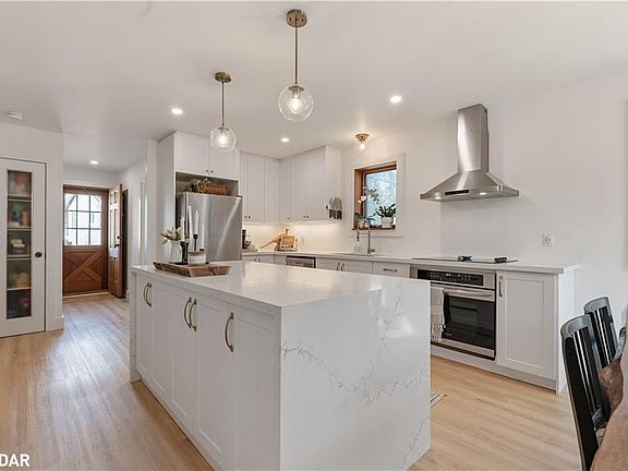 STEPS away from SANDY beach access in the beautiful Woodland Beach area! This stunning property features a great-sized lot with a detached garage, storage shed, and ample parking in the long driveway—perfect for all your outdoor needs. 4 bedrooms & 3 full bathrooms may be part of the draw... but prepare to be impressed by the extensive & beautiful renovations throughout the home! On the main floor, you'll find a beautifully renovated kitchen (2023) w/ quartz counters (2024), a pantry for added storage, and updated flooring, along with all new appliances (2024). The main floor bath has been fully renovated to perfection (2023) with washer/dryer hookup to accommodate main floor laundry. There are also new dining & bedroom windows (2022), and a glass door at the front entrance (2023). Upstairs, the upper bath has been enlarged & fully reno'd, while all bedroom windows have been updated (2022). Additional upgrades include a new primary bedroom closet/dressing area (2022), and new flooring (2023). On the lower level, there's HUGE potential to create an "in-law" space w/ separate entrance. The bath & separate laundry is already there! Lower lvl updates: new full bathroom (2024), a new 200 amp electrical panel (2024), UV water filtration system (2021), and an owned water tank (2021). Other upgrades include levelling of the basement floor and removal of a large brick fireplace/chimney passing up through the entire centre of the home! The AC unit was newly replaced as well, in 2021. Outdoors, enjoy backyard fencing for privacy, and all-weather plumbing spigots (2023). The front deck stairs have been replaced for safety (2023), and gutter covers have been installed on both the house and garage, providing peace of mind year-round. A gas hookup for bbq adds convenience. Don't miss this opportunity to own a meticulously renovated home in a prime location. 7 min to Wasaga Walmart/groceries/restaurants. 30 min from N Barrie.