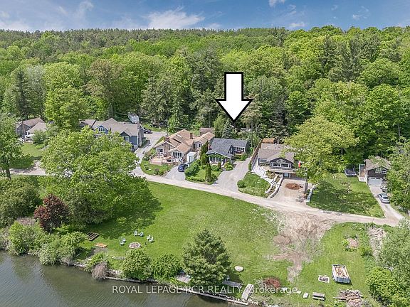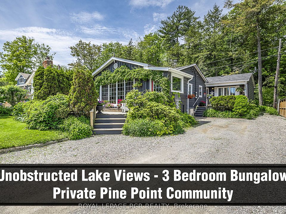 Charming 3 bedroom Bungalow with UNOBSTRUCTED LAKE VIEWS in the sought-after community of Pine Point. Residents enjoy shared ownership of an impressive 41 acres of pristine land directly adjacent to the property, featuring well-maintained trails that invite leisurely strolls, a boat launch area, nature walks and exploration right from your backyard. Experience Lakeside Serenity with this charming and lovingly maintained bungalow nestled amidst lush gardens and vibrant greenery, this private retreat boasts breathtaking views of Lake Scugog, providing a stunning backdrop for every season. Step inside to a large, open-plan living space bathed in natural light, featuring elegant hardwood floors that extend throughout the main level. This lovingly cared-for home offers three bedrooms on the main floor, providing ample space for family and guests. Multiple walk-outs lead to expansive decks, seamlessly blending indoor and outdoor living and creating the perfect setting for morning coffee, evening relaxation, or entertaining while soaking in the spectacular lake scenery. The finished basement expands your living possibilities, complete with an additional large bedroom and 2-piece bathroom, ideal for a growing family, a private guest suite, or a dedicated home office. Beyond your private haven, immerse yourself in the unique benefits of the Pine Point Community. Experience peace of mind with a remarkably low annual fee of just $569, which covers all road maintenance, trail upkeep, and road snow removal, ensuring year-round accessibility and a well-maintained community. This is more than just a home; it's a lifestyle. Perfect for those seeking a peaceful and vibrant community, and direct access to the beauty and recreation of Lake Scugog.
