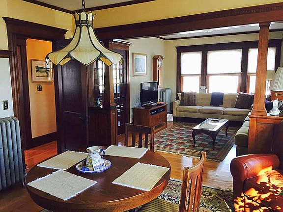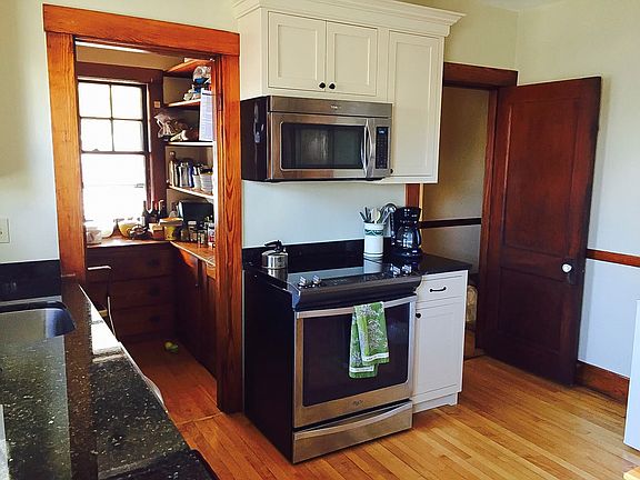 This first floor/single level unit was converted to condo?s and updated in 1996. The nearly 1100 square feet space includes 2 bedrooms and an updated bathroom. There is a full eat-in kitchen with spacious pantry, refrigerator, range, and disposal. Separate living and dining area with historic built-in china cabinet. Throughout the unit you will find window treatments and curtain mounts, beautiful original warm oak trim, freshly painted walls, state of the are electrical wiring and smoke detectors, hardwood floors, new lighting fixtures, spacious closets, and more. Washer and dryer included. Spacious basement for additional storage. Relaxing rear porch and shared yard. Comes with one covered parking space as well as additional on-street parking. Fenced yard. One small pet is allowed! No smoking!! Within blocks to Waltham/128 office park, food shopping, bodegas, Prospect Hill Park. Within 1 mile to commuter rail, Moody Street restaurants and shops, bike paths, library, post office, City Hall, etc.