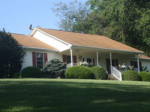 One Level Living with Privacy, Views & a Front Porch to Enjoy it all! This beautifully kept home is ready to move in! From the Moment you walk in to the Great Room with its Vaulted Ceiling and Gas Log Fireplace to Charming Country Kitchen with Butcher Block Island, Tile Counters & Back Splash, SELLER WILL PAY 5K IN CC W/ACCEPTABLE OFFER Built in Wine Rack & Lg Pantry, you will feel AT HOME! Beautiful Hardwood Floors are in the Main Living areas. Master offers a great relaxing tub! You will enjoy the garage with work benches & extra custom storage. A beautiful deck overlooks pasture area in the back...cows are your neighbors! Tall Crawl has de-humidified rm for storage. Occ. Dampness unfinish area. Storage Bldg w/ Lawn items convey