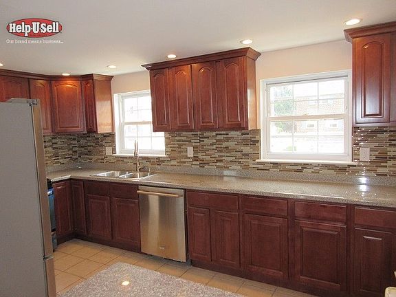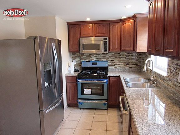 Remodeled 2 Story Brick Twin Home; Located in Millbrook Section in the Great Northeast; Built-in Garage with Off street parking; New Modern Kitchen featuring granite counters, island, stainless steel appliances; New hardwood floors in living room and dining room; Access to Deck thru slider from living room; Dining room features a beautiful Bay Window; Remodeled 2 piece Powder Room on first floor; Second floor includes 3 large bedrooms with closets, ceiling fans and New wall to wall carpeting through out 2nd floor plus Remodeled Hall Bathroom; Lower Level includes One Car Buit-in Garage with access to inside, Laundry Utility Room; Finish basement with walk-out thru sliders to patio and rear yard; Basement has new hardwood floors and features a dry bar. Other features include Central Air, Roof recently silver coated, New concrete patio, new concrete front steps.